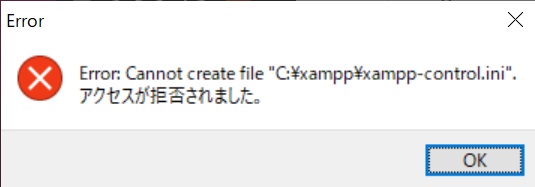 インストールしてXAMPPを起動しようとしたら「Error:Cannot create file “C:\xampp-control.ini”.アクセスが拒否されました。」と出る。